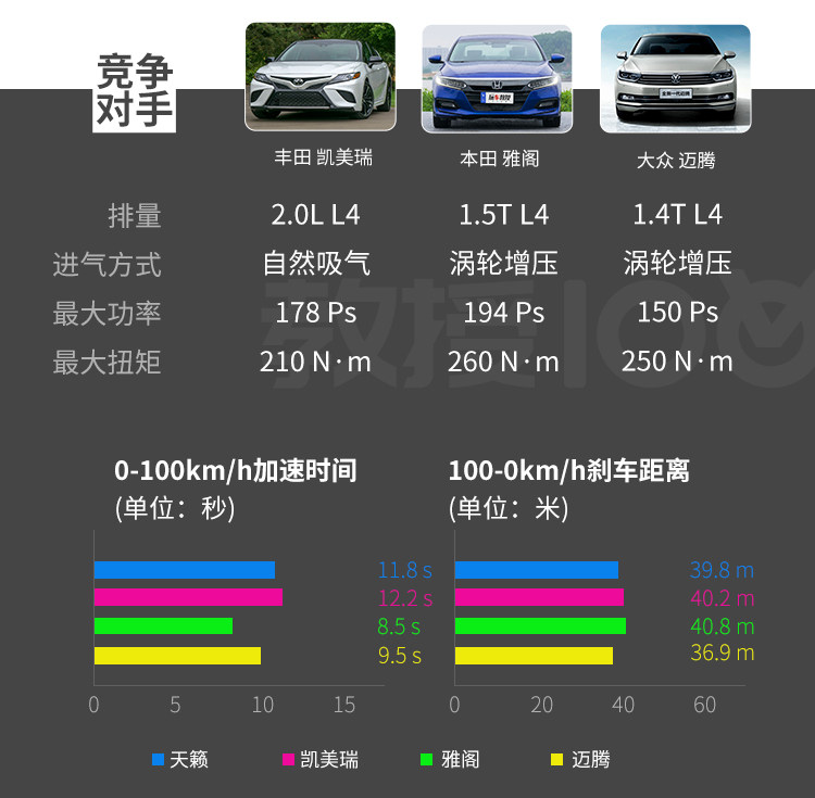 但是在进行0-100km/h加速测试时,2.0L发动机动力不足的弱势就充分展现,中后段加速感较弱,而在实际驾驶过程中这套动力系统在进行高速超车或行驶途中急加速的动作时也会表现出比较明显的乏力现象,因此对于追求动力感受的消费者来说,2.0T车型绝对是更好的选择。