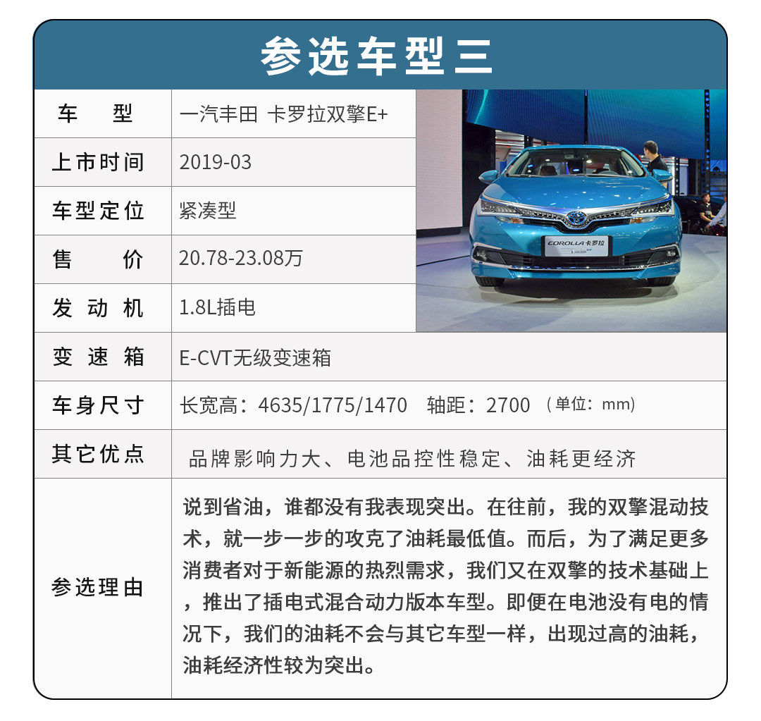 小结:在新能源发展上,自主品牌涉及时间会比较早些,比如比亚迪。而丰田虽然早在油耗上进行技术攻克,但受于国内环境因素限制,并没有及时赶上大好时机。虽然卡罗拉双擎E+版本的车型,价格相对来说会高些,但依靠自身出色的条件,再加上限行政策因素限制等,未来在市场还是有很大的作为。