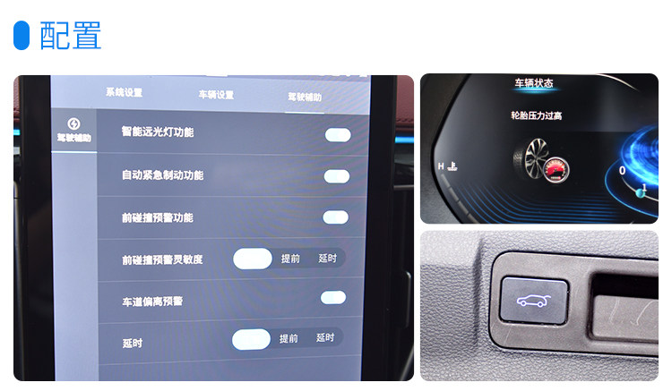 东风风行T5L拥有完整的ADAS驾驶辅助系统,对于一款中型SUV来说,这个配置十分实用。风行T5L还有半自动泊车、胎压监测、电动后备厢等十分便利的功能,用着省心。