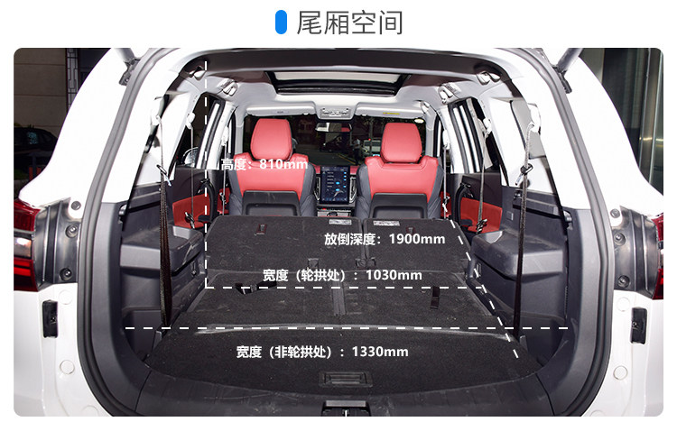 风行T5L的后备厢十分灵活,第二排支持4/6比例放倒,完全放倒后深度达到了1900mm。如果只放倒第三排,那么深度也有1170mm,一家五口长途旅行是没什么问题的。