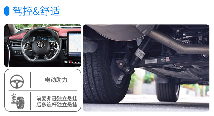 在底盘和转向助力方面,风行T5L也是采用了比较传统的前麦弗逊后多连杆的悬挂以及电动的转向助力。风行T5L的底盘和转向设定都偏向于舒适性,符合一台大7座家庭SUV应有的调性。