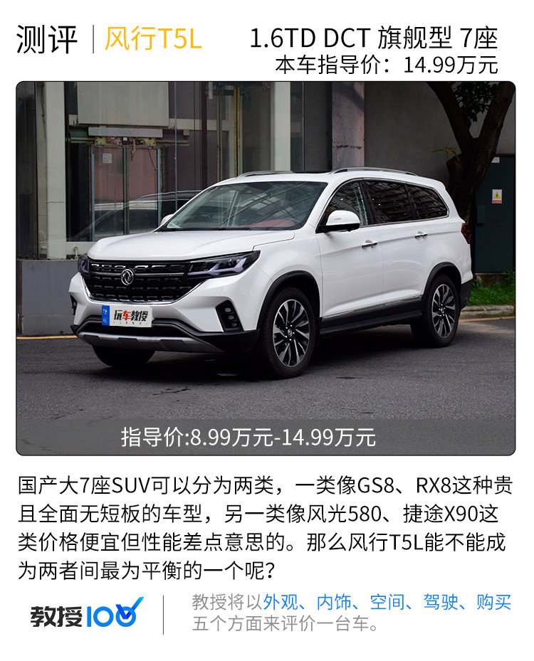 国产大7座SUV是一个充满竞争与机遇的市场,这个级别不存在一个方方面面绝对好的车型,所以每台新车都有机会成为这个级别的霸主。今天我们测试的这一台搭载宝马技术授权1.6T发动机、拥有ADAS辅助系统,八年或十六万公里质保的东风T5L显然有机会成为大家的选择。
