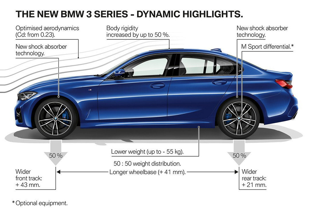 19款宝马3系于去年9月份在洛杉矶上市,相比18款车型,变化可以归纳为以下3个方面:铝合金以及高强度钢材的广泛应用,实现了更低的车身重量;稍有提升的2.0T高功率发动机,性能油耗表现更为突出,330i车型零百加速时间仅为5.6s;轴距提升至2851mm,后排稍有改善。