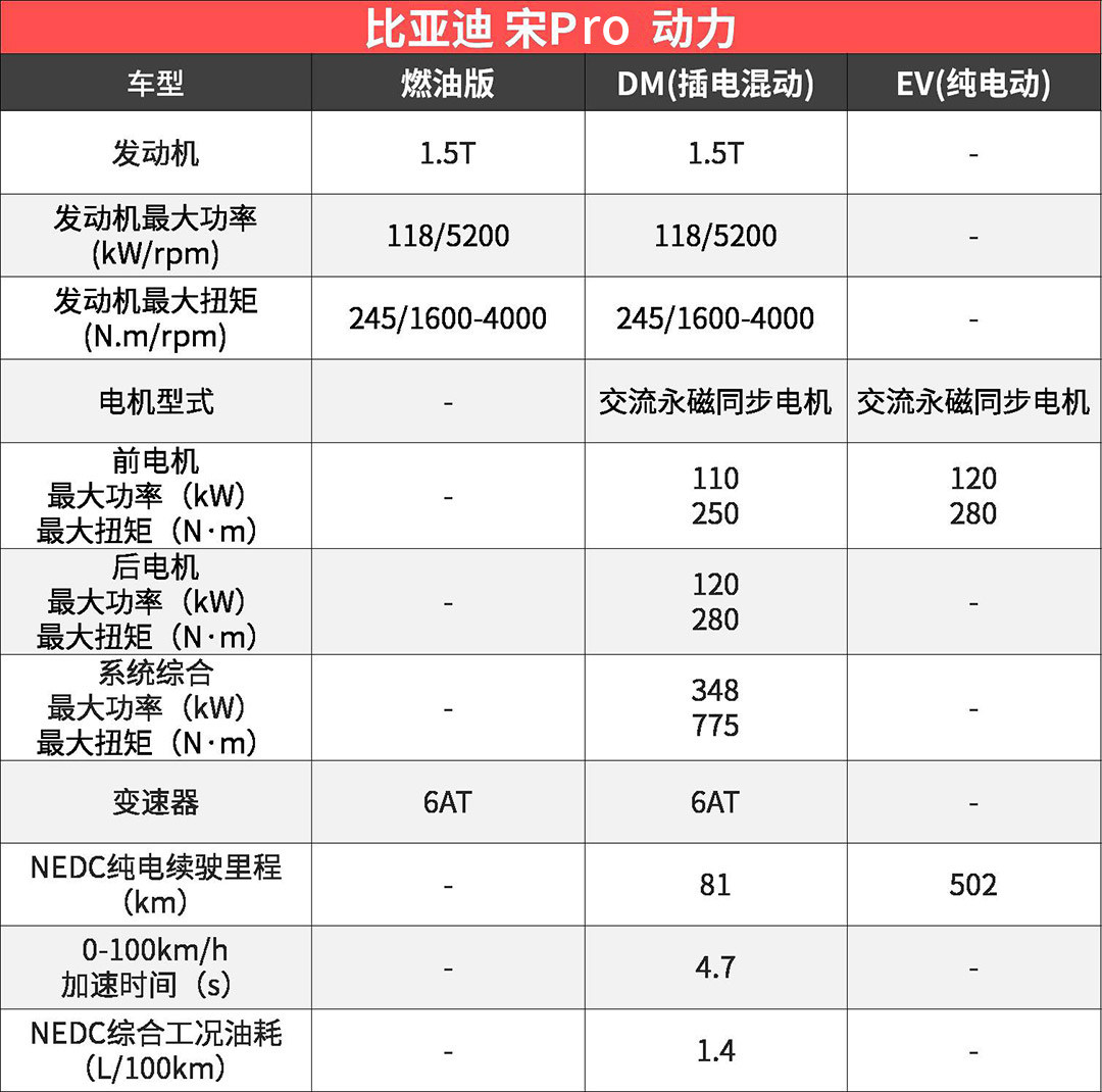最后再来说说视频中由于时间关系没有提及的动力方面,三种动力,分别是1.5T前驱、1.5T+全时电四驱和纯电动前驱,通过下方表格展示更直观。