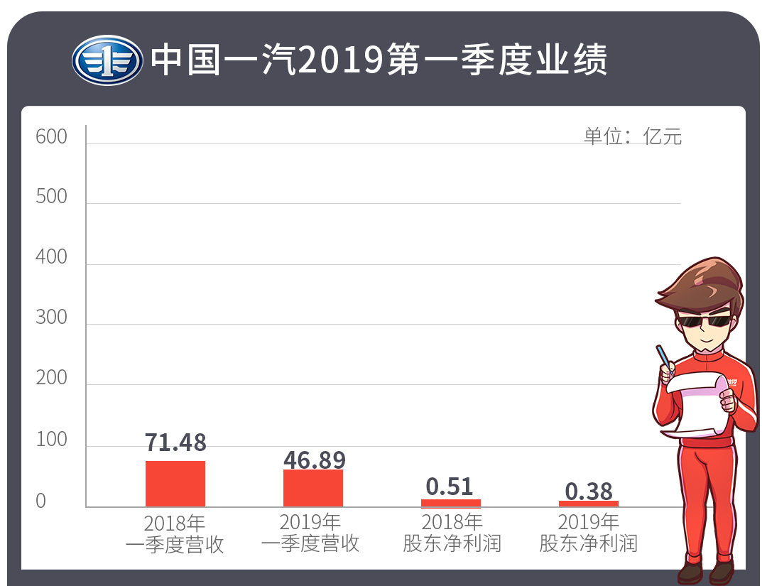 中国一汽轿车部分2019年第一季度营业收入约为46.89亿元,同比下滑34.39%。归属于上市公司股东的净利润约为3853.77万元,同比下滑26.2%。一汽夏利第一季度营业收入约为13.49亿元,同比下滑64.06%。归属于上市公司股东的净利润约为-1.99亿元,虽然同比增长10.75%,但仍处于亏损状态。