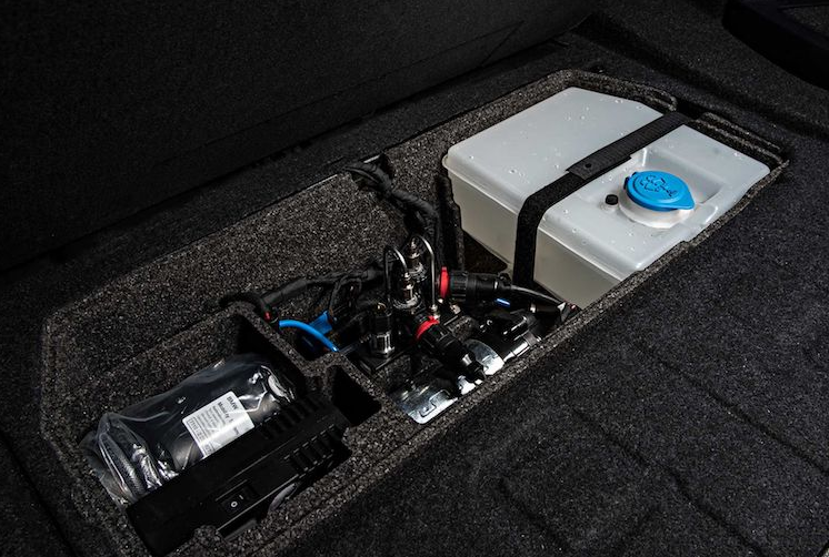 注水系统的水箱容积为5升,水箱布置在后备箱,加注水与甲醇的混合物。水用完后,发动机动力又会回到原点。