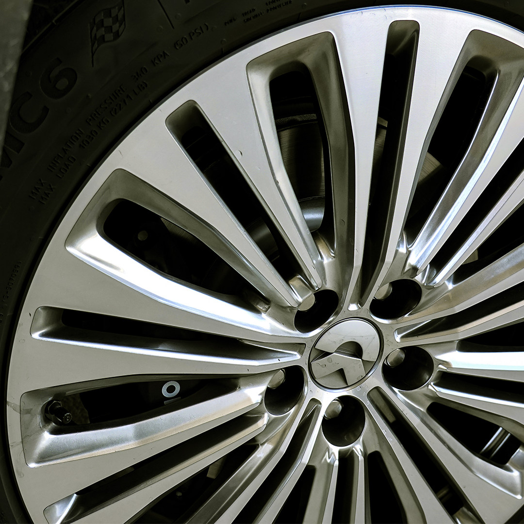 Brembo 四活塞卡钳+305x32mm通风式刹车盘,配合博世i-Booster系统,能产生最大1g的制动力。