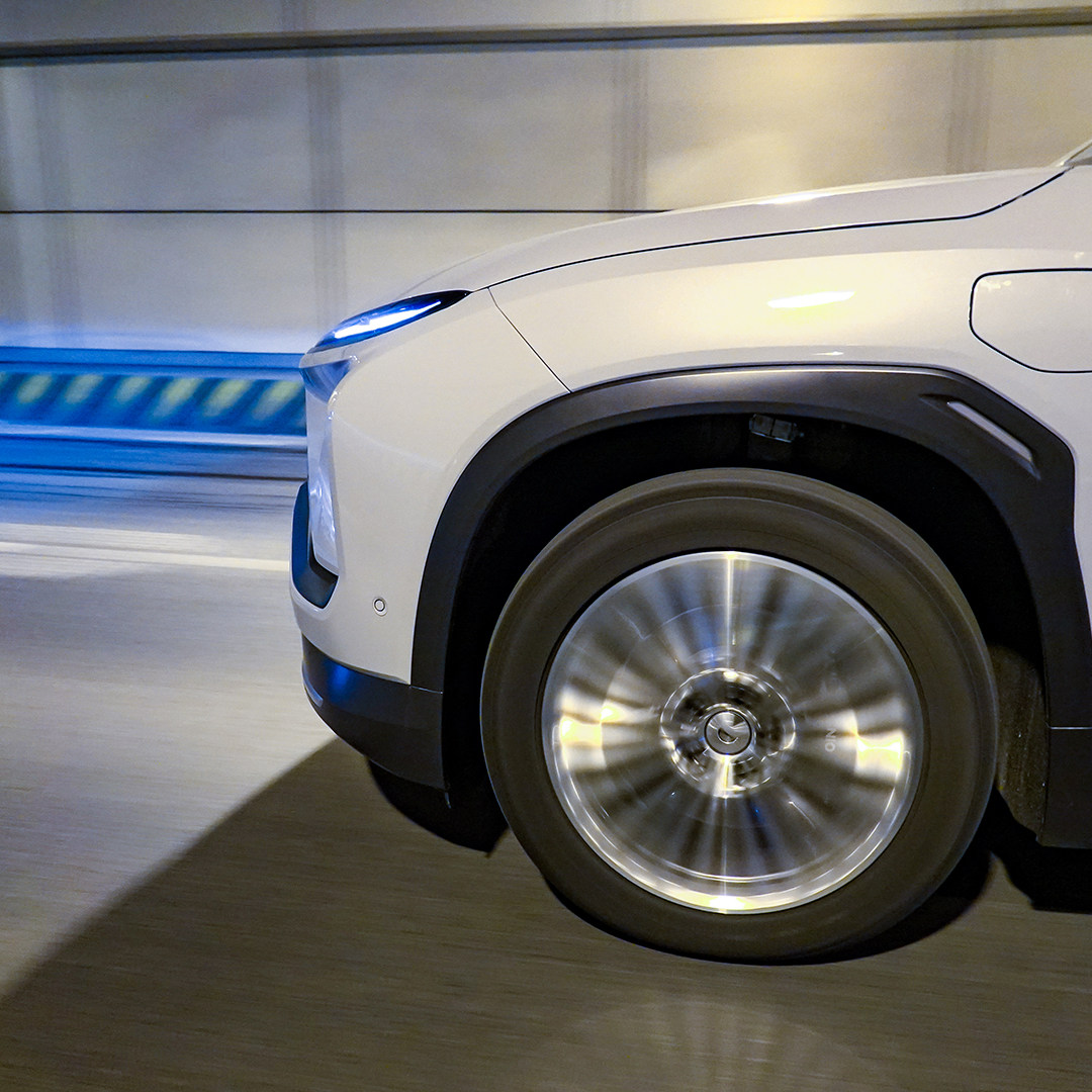 ES6拥有91%全铝车身+2平米碳纤维底板,扭转刚度达到惊人的 44,930Nm/deg ,并且整车重心低至560mm,这已经是接近运动轿车的设定了。