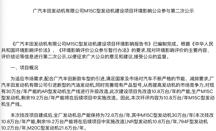 (广汽丰田引入1.5L 三缸发动机)