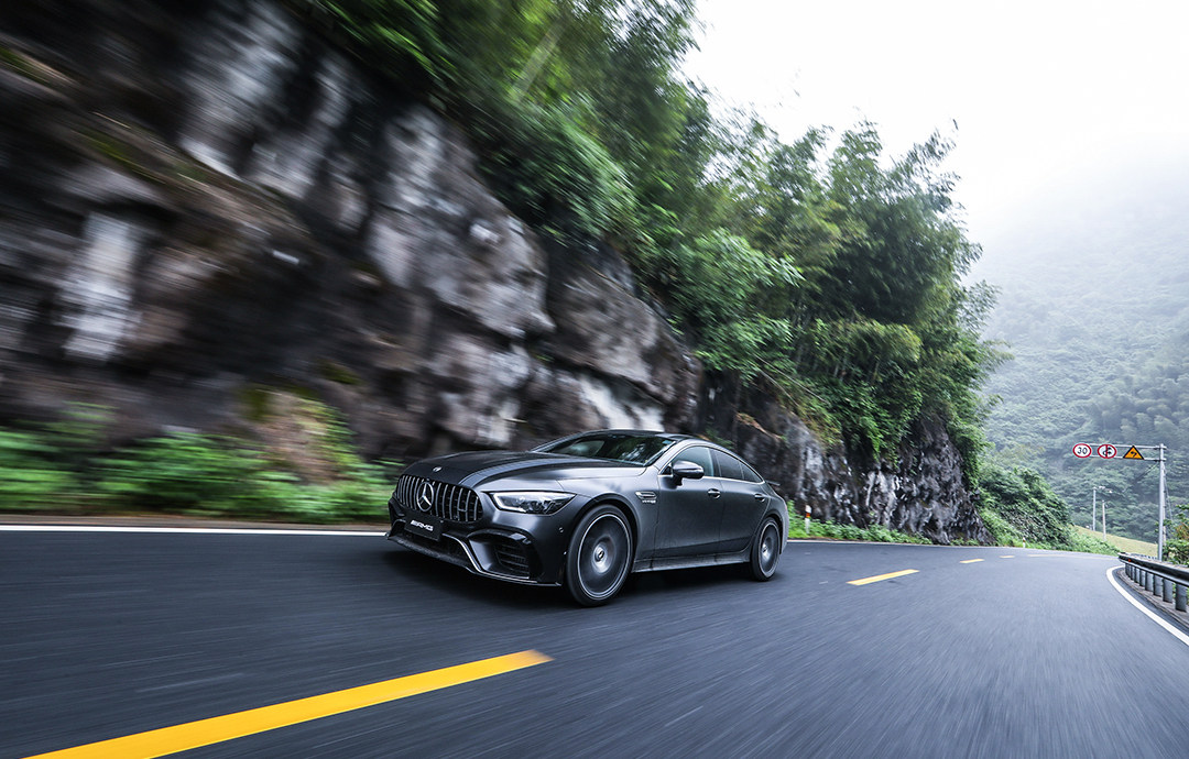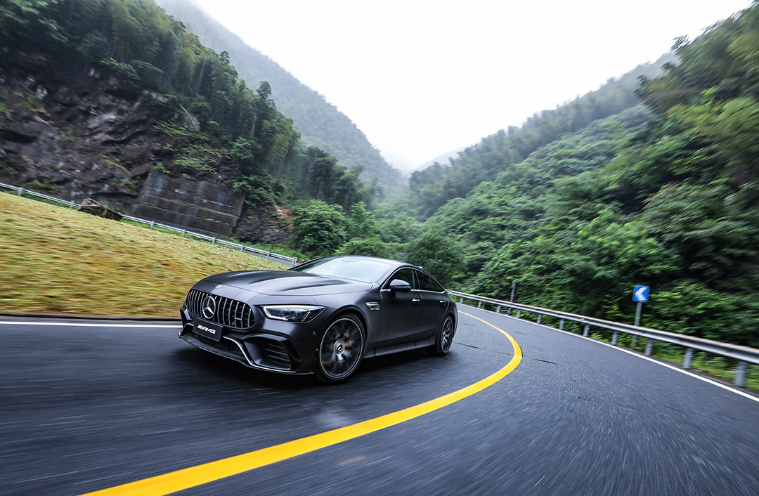 即便眼看就要遭遇下一个弯道,AMG GT四门跑车也因有4MATIC+的加持让我足够安心。主动扭矩分配使得车辆更主动地去进入弯心,而主动式后轴转向系统,则让这头巨兽脚步变得异常轻盈,“大笨象会跳舞”,说的就是它吧。