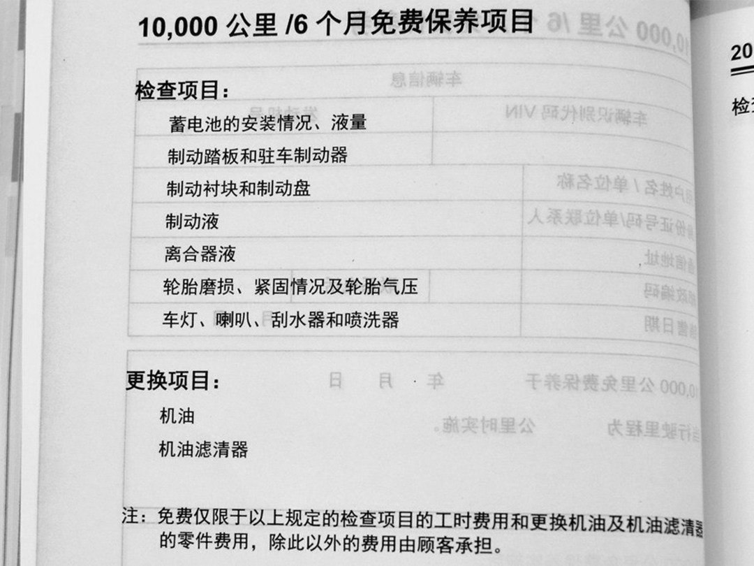 比如有些车型的保养间隔较长,为6个月/10000km,但提车后3个月/5000公里需要进行“首检”,注意这只是“检查”,原则上不需进行更换机油三滤等“保养”操作。