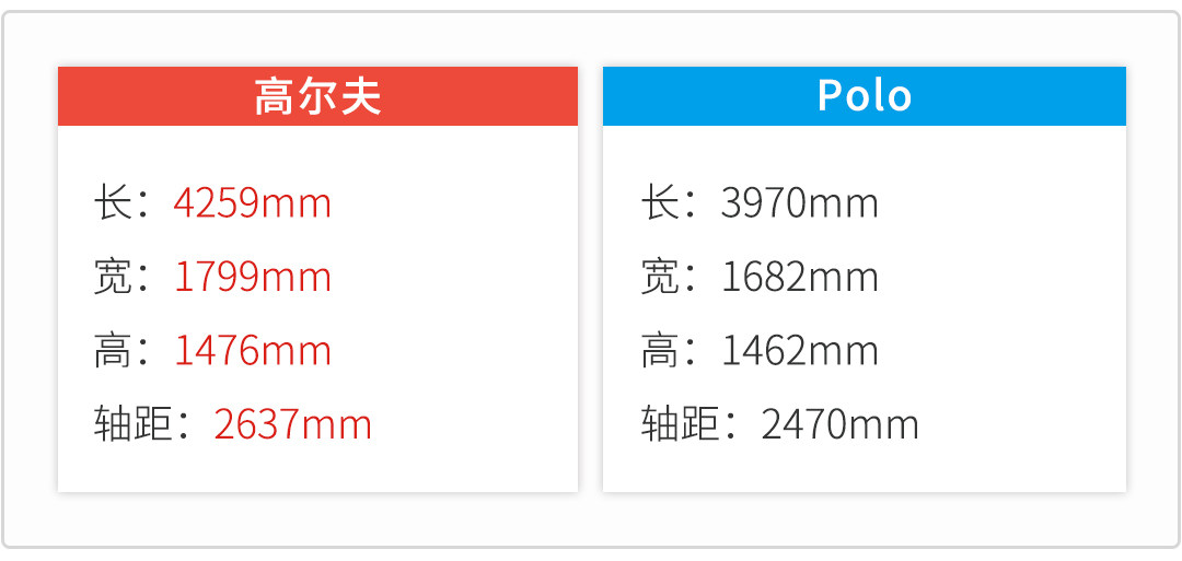高尔夫比Polo大了一圈,高尔夫可以归类归类为A级车,Polo为A0级。轴距上两车相差有16厘米,空间差距非常大,
