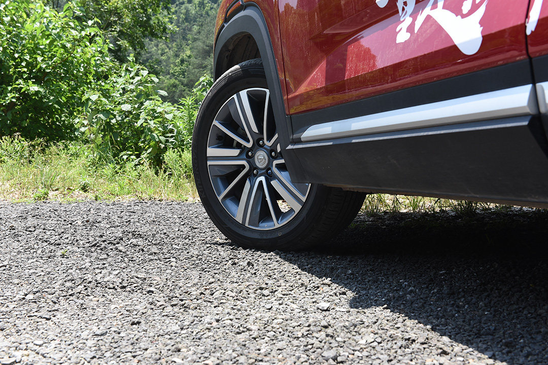 熏黑的梯形护板让我想起了象征着硬派越野的JEEP,下放安放的是尺寸为215/55 R17的韩泰轮胎。