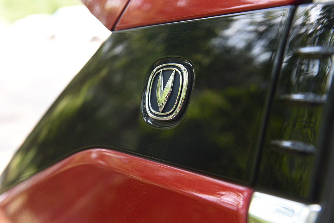 近看时无论是尾灯的造型、贯穿式设计,尾部都和前脸保持着高度的统一。而且还有银色的下护板点缀时尚中又带点野味,美中不足的是贯穿式尾灯的中间并不能发光。