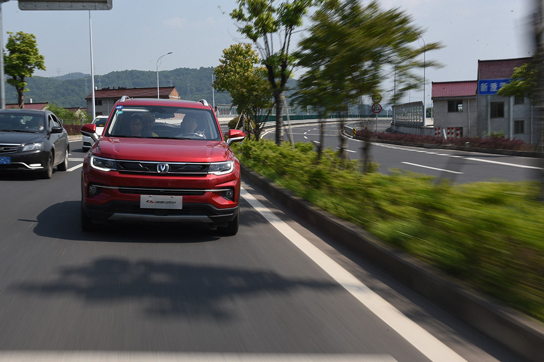 如果是第一次驾驶CS35 PLUS或许需要点时间去适应油门的调校风格。因为CS35 PLUS通过将前段油门调校得更灵敏的做法营造出一种自己很快的驾驶感觉以此来弥补自己中后段加速“乏力”的窘况,这是很多采用小排量自吸发动机车型的惯常伎俩。当速度指针迈过80大关后,可以明显感受到这具1.6L自吸发动机的力不从心,幸好上佳的静音效果隔绝了因大脚油门而诱发的发动机吼叫。