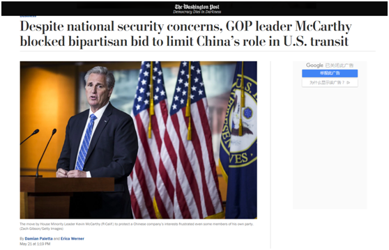 不过比亚迪比华为幸运的是,他不是一人孤身奋战。面对美国政府的“无理吵闹”就连自家人也看不下去了。美国众议院少数党领袖麦卡锡公开支持比亚迪,反对国会两党试图限制中国企业获得美国政府资金的运输系统合同订单。结果换来的是遭遇大量美国媒体的“集火”。