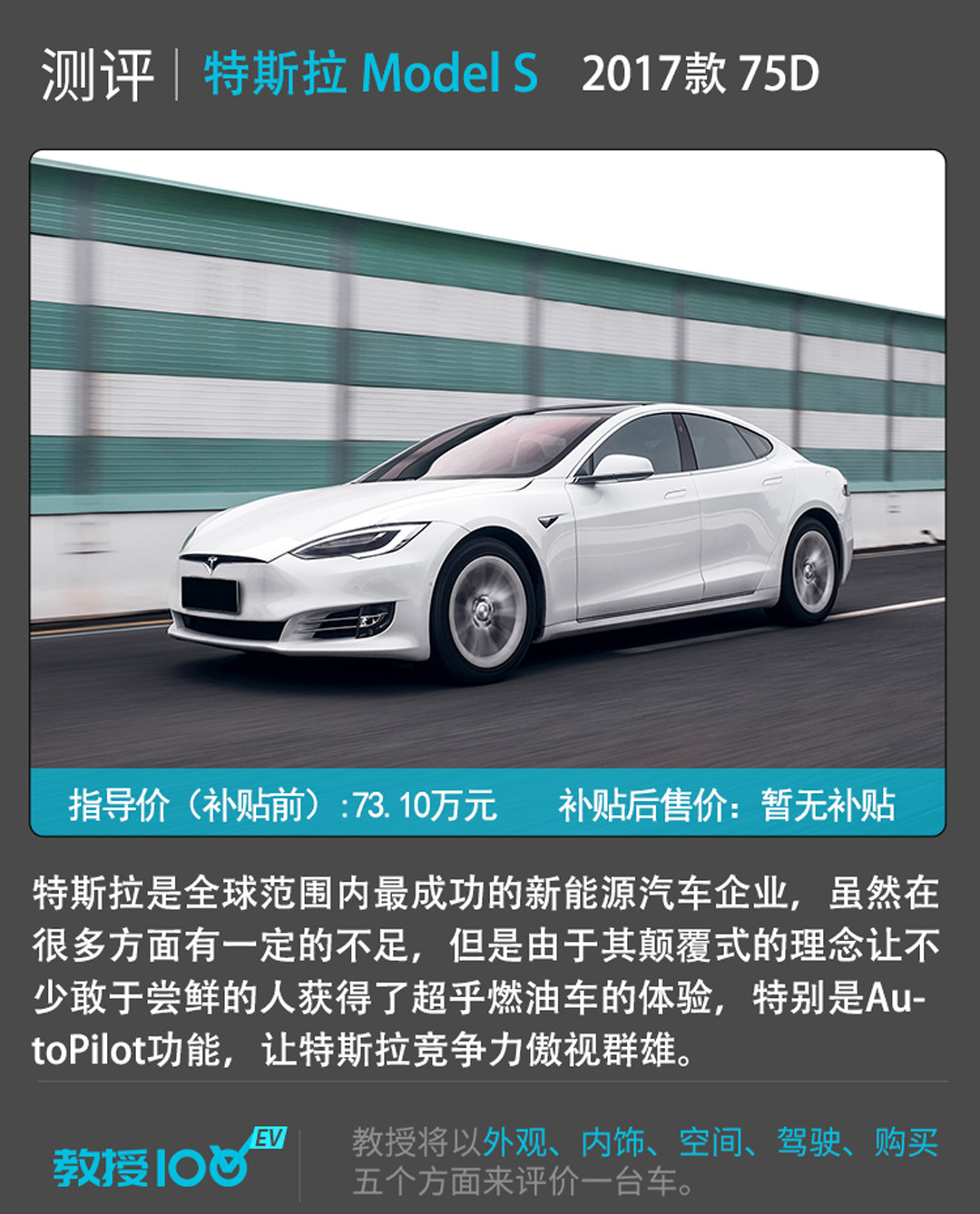 Model S是特斯拉最先推出的产品,经历了改款以后外观设计上更加符合如今的审美,取消掉了原来的“假中网”设计,使得整辆车更加偏向极客的风格。其实在同级别车型中,Model S可以说是没有定位一样的对手,即便是同样定位中大型车,也没有像它那样的纯电动身份。不过在唯美的外观下,特斯拉的做工也是很多人诟病的地方,例如在一些胶条或者做工等细节处理上,特斯拉不尽人意,虽然不影响使用但是对于一台高昂售价的产品,粗糙的做工不能满足该价位的要求。