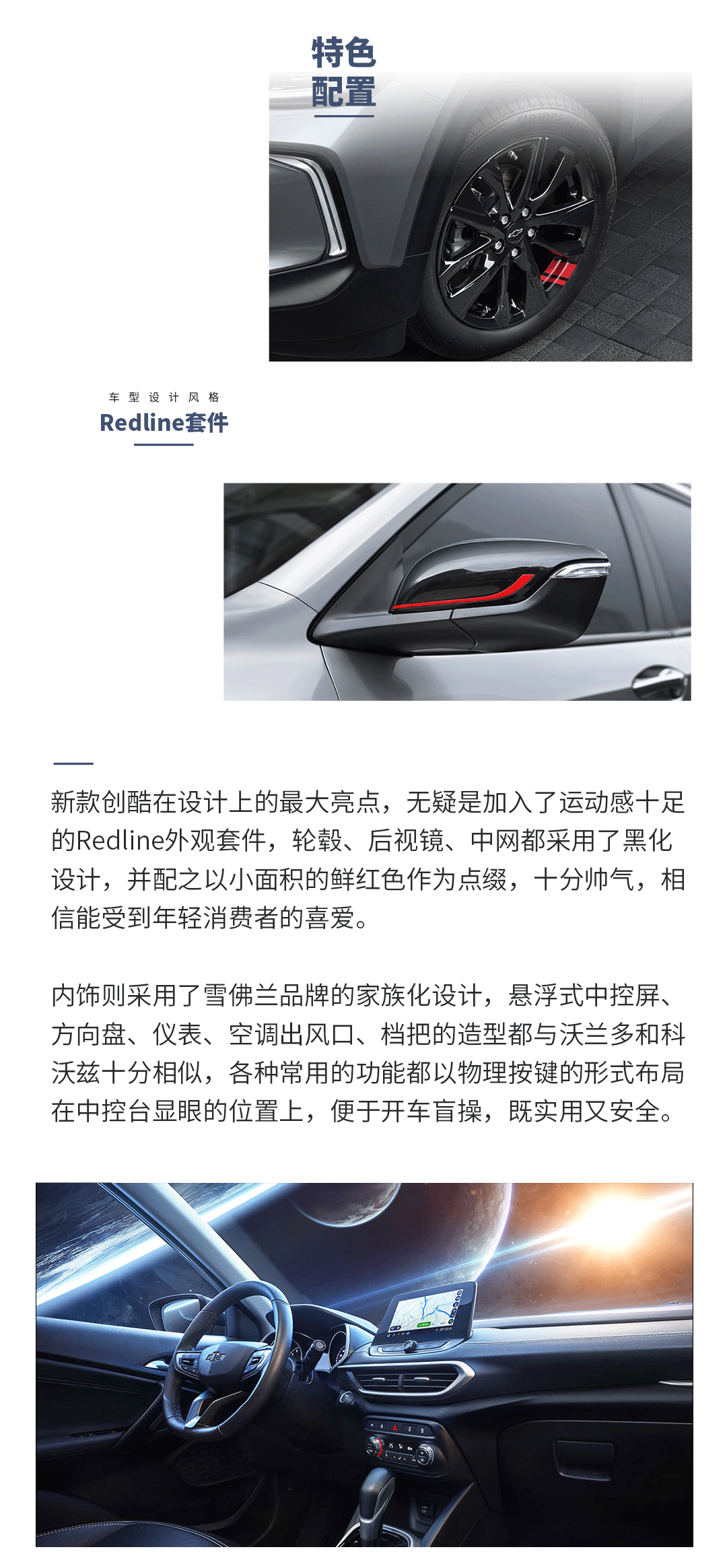 个人认为,冰原白这个外观颜色与全新创酷最搭,这是因为冰原白能与黑色加红色点缀的Redline套件形成强烈的颜色对撞,让整车外观十分夺人眼球,符合全新创酷年轻运动的定位。此外,海崖灰也拥有不错的视觉感受,看上去独具工业美感。