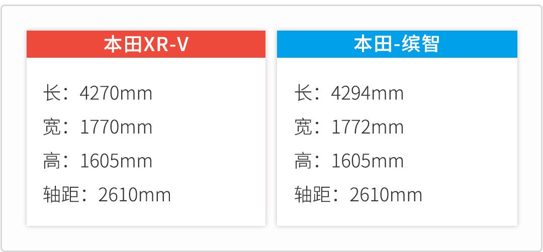 在车身尺寸上,本田缤智的车身尺寸为4294*1772*1605mm,本田XR-V的车身尺寸为4270*1772*1605mm。在尺寸上我们可以留意到缤智的车身长度会比XR-V稍微留长一点的,但暂可以忽略不计的,因为在乘坐空间上根本体现不出这微妙的变化。