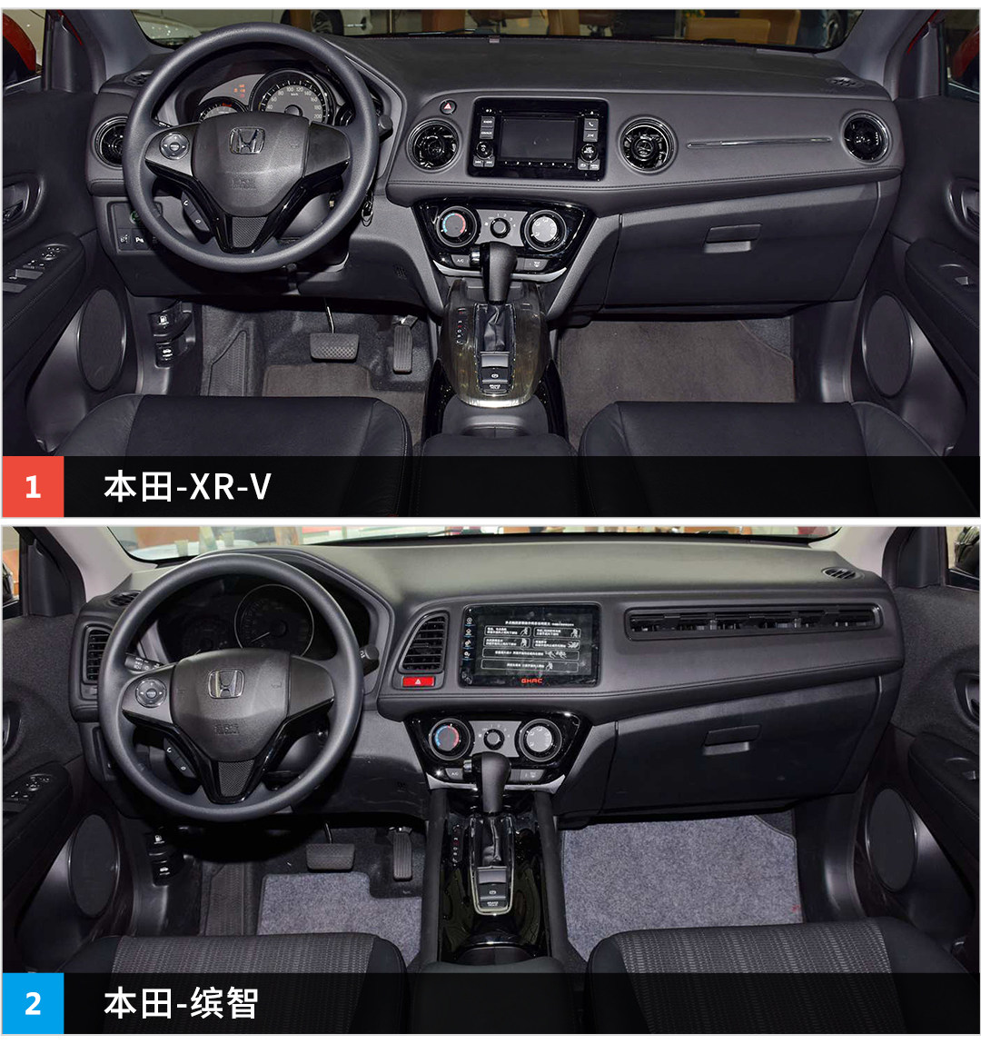 在内饰方面可以说是大同小异,缤智的副驾驶空调出风口是采用连贯式的,XR-V的空调出风口采用的则是炮筒形状,基本只能从空调出风口与百叶窗之间区分两者的差别。中控台大面积的硬性材质也比较符合这个价位应有的定义,但本田设计可说是良心的买卖,虽然只是硬质材料的塑料,可却看不出廉价的感觉,仿佛有一种仿皮的视角效果,显然走心的设计。