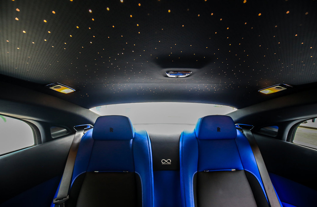 进入魅影Black Badge车内,黑色映衬的星光顶倾斜而下,璀璨的星光让车内熠熠生辉,整个车厢尽显神秘与磅礴气势。