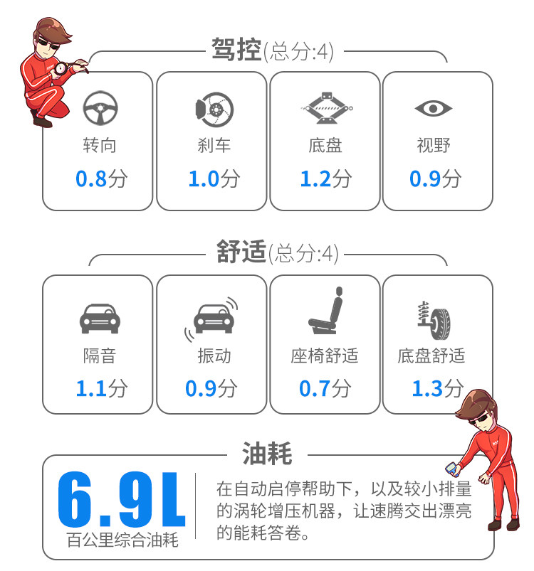 当然了,厂商不一定会这样做,这多数得留给车主自己去更换了。总体而言,速腾的整个驾驶表现既兼顾了日常的舒适性,也很好地营造出了它所想表达的目——高级感,如果是急性子的朋友,那教授还是推荐你购买福克斯、昂克赛拉这样的运动型A级车吧。