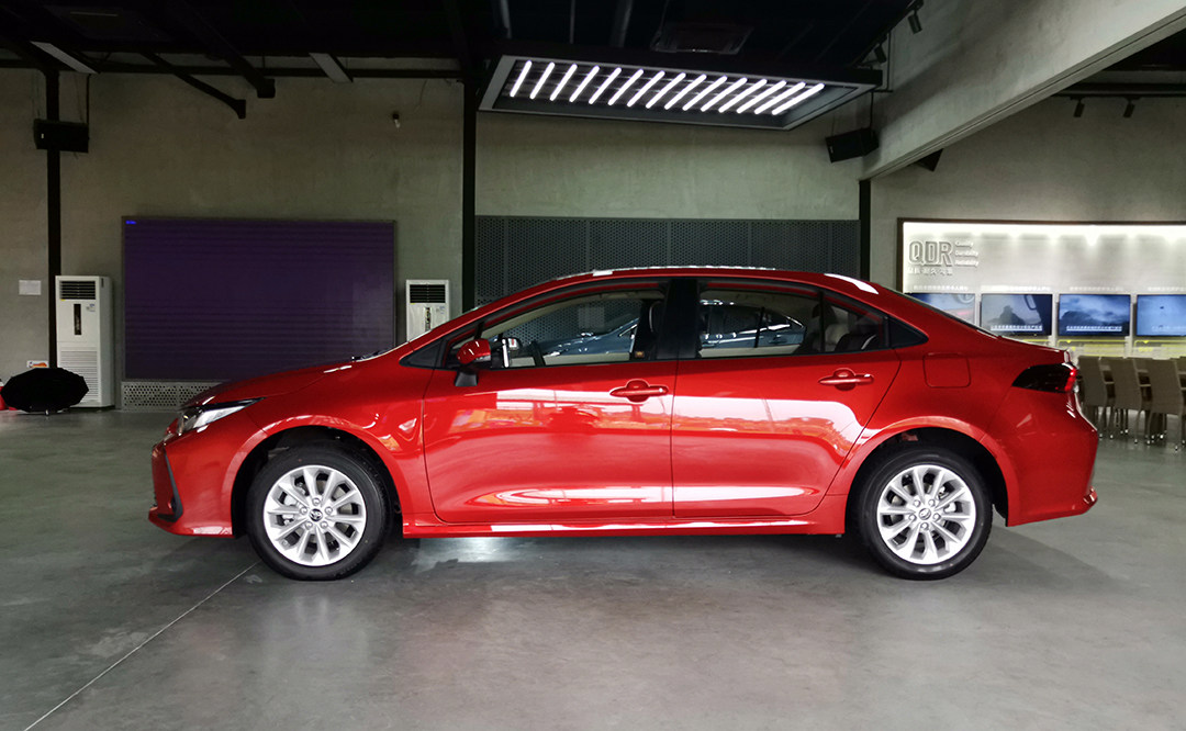 侧面并没有什么亮眼的地方,贯通式的车侧腰线让卡罗拉有着更富立体交错的线条感,一副干净清爽的样子。