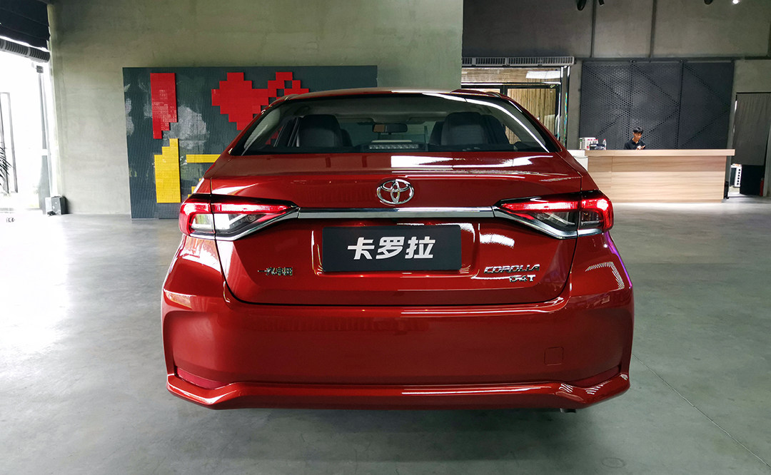 尾部设计偏简洁化,但是造型和雷凌有着明显的差异,营造出一个立体宽阔的车尾。银色的镀铬装饰将L形的尾灯衔接在一起,整体上并没有什么出彩的地方。