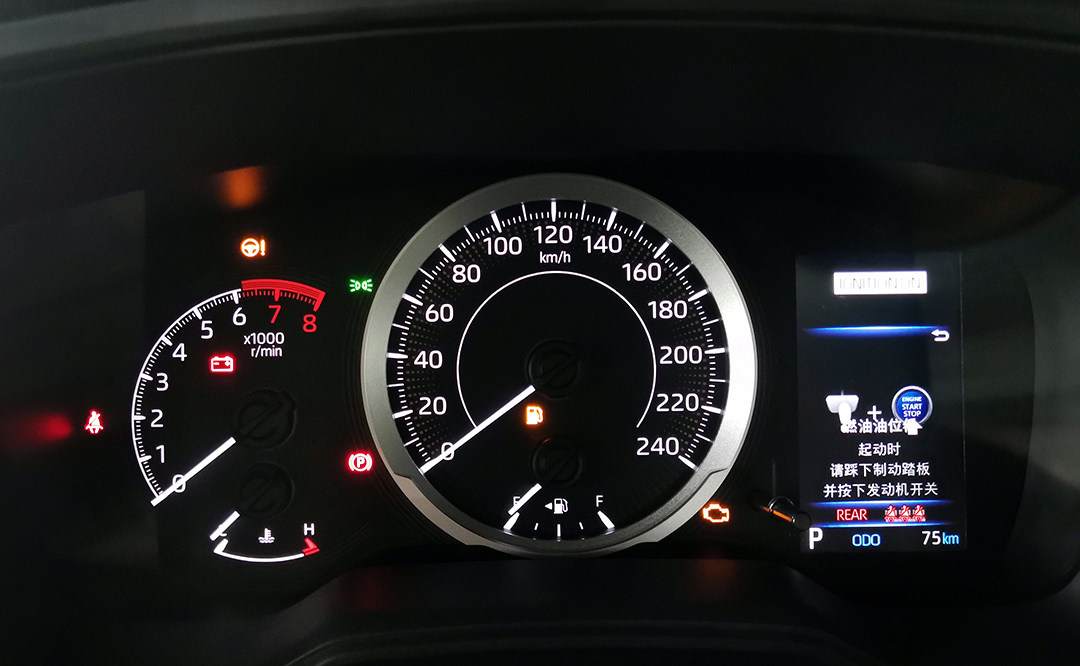 仪表盘方面,卡罗拉还是采用了传统的指针式,右边有个小小的显示屏提供关于发动机的一些信息,这样的搭配在如今都是液晶显示屏的趋势下来看是有点保守了,当然你也可以说是丰田为了可靠性和成本做出的妥协。