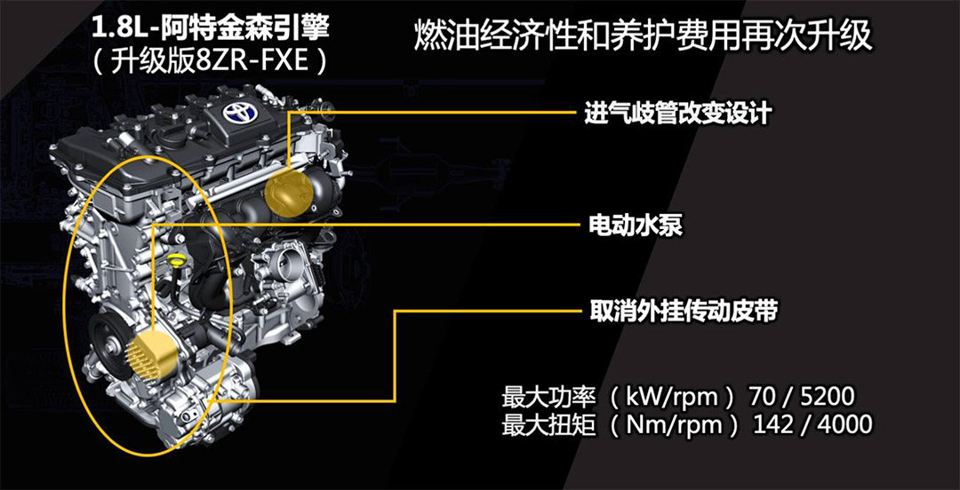 1.8L阿特金森循环引擎也进行了多方面的升级,进一步提高燃油效率,降低噪声,作为同级别中少有的混动选择,在动力和续航方面优势明显。