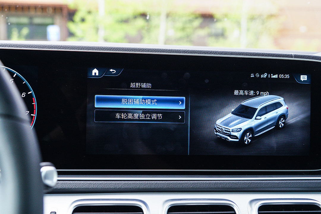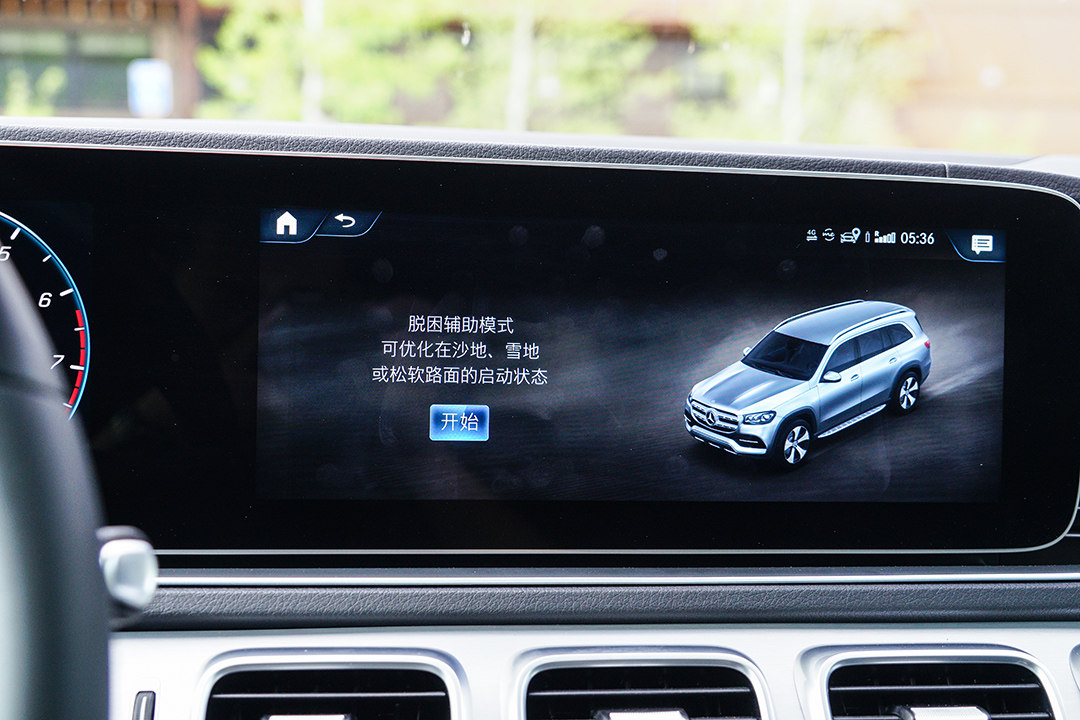 早前在国内测试的GLE上缺失的“跳舞”脱困功能,于GLS上得以实现,具体操作方式是在挂入D挡的前提下,将驾驶模式调至Offroad,然后进入脱困模式,点“Start”,车辆会进入20秒的“自嗨模式”。