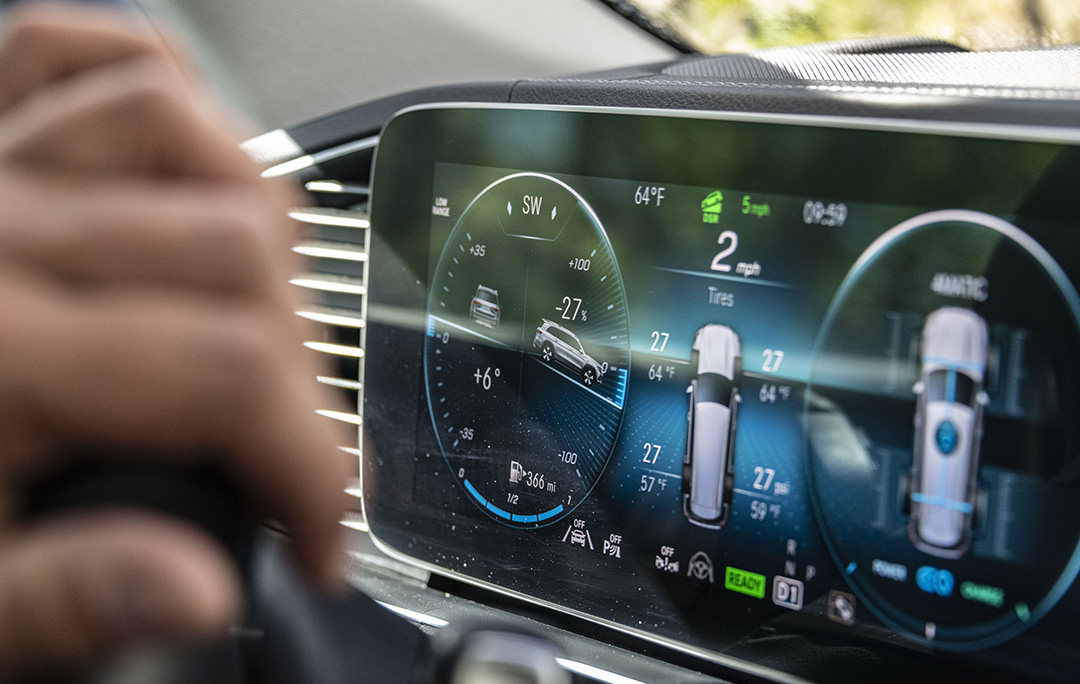 仪表盘上的越野显示器和平视显示器新增更多车辆信息的显示(车身纵向和横向倾斜角、扭矩分配比例、减震器状态)。