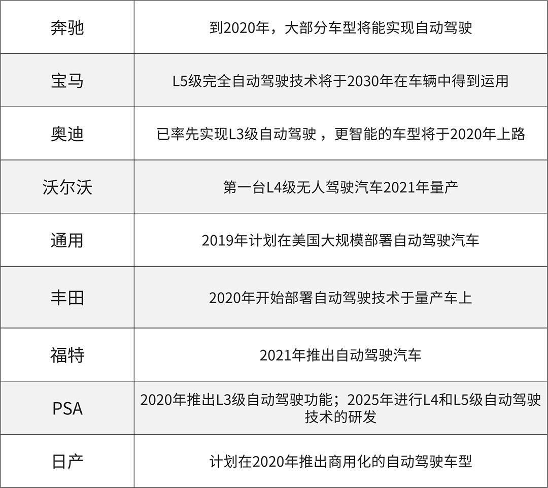 与互联网车企用户驱动硬件、软件驱动硬件的思路不同,传统车企依然用工业时代生产“硬件”商品的思路去研发制造一辆汽车,路线不同,但目的相同:制造出完全自动驾驶的汽车。