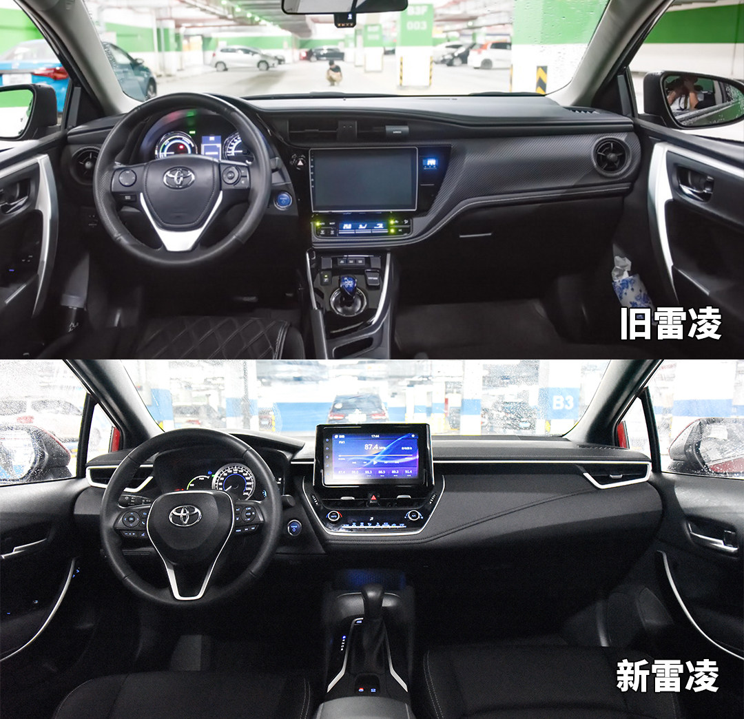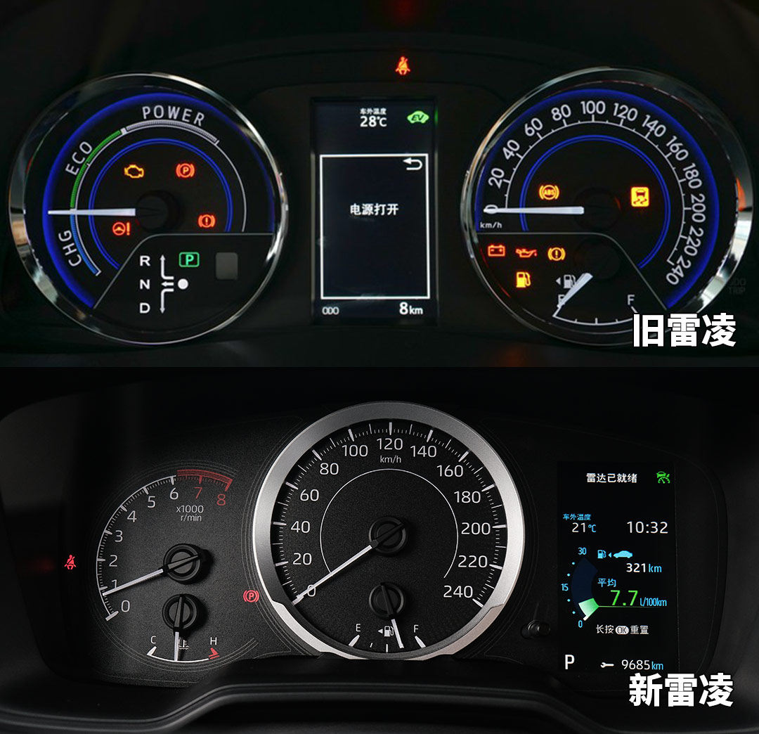 新旧雷凌的仪表盘发生了变化,新版非对称的设计没有那么严肃。