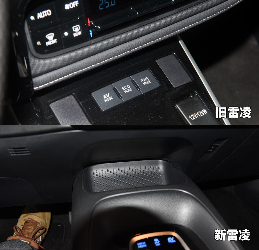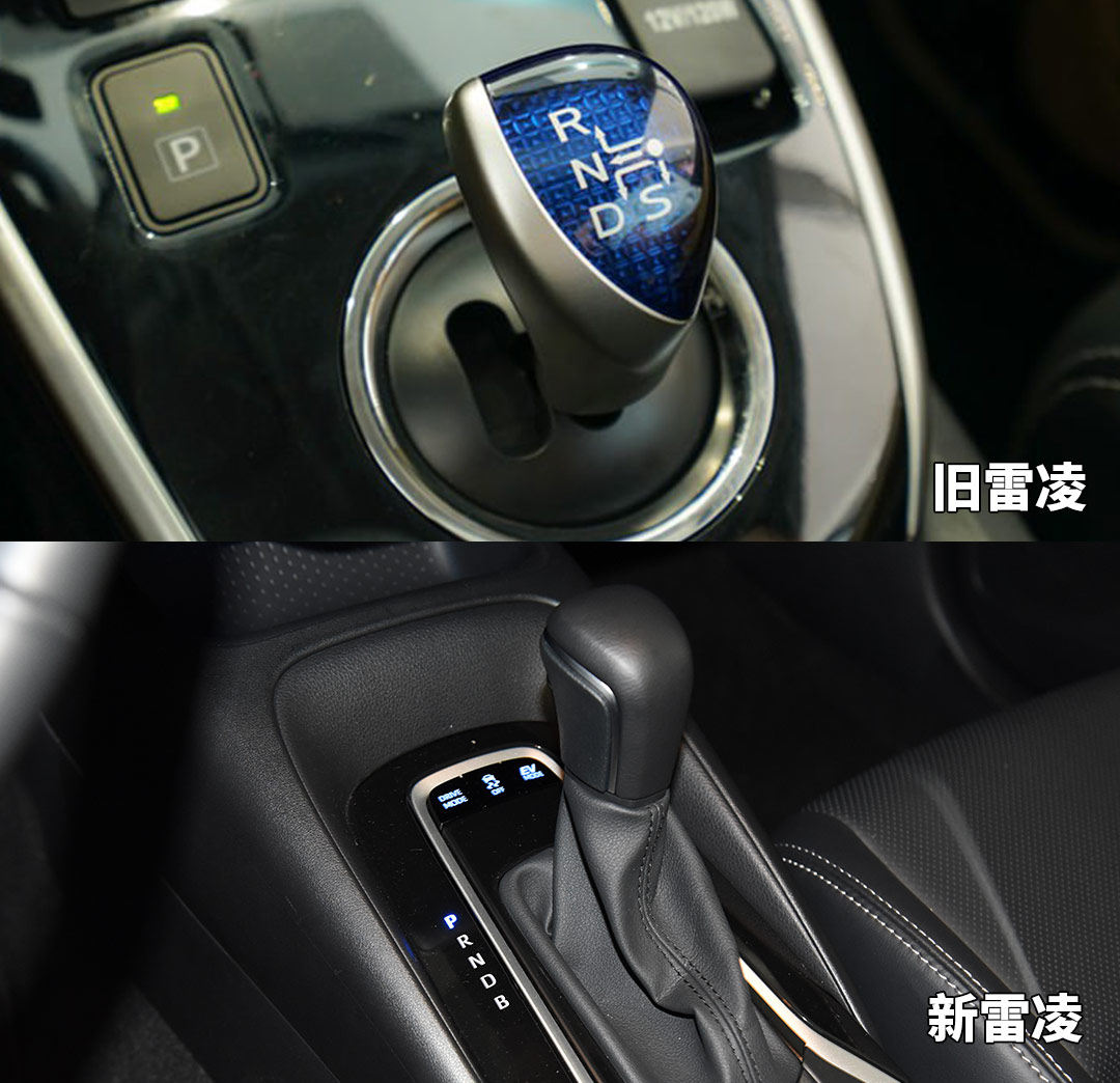 从中央过道可以看出来,新雷凌凸起更大,而且前后的宽度更小。