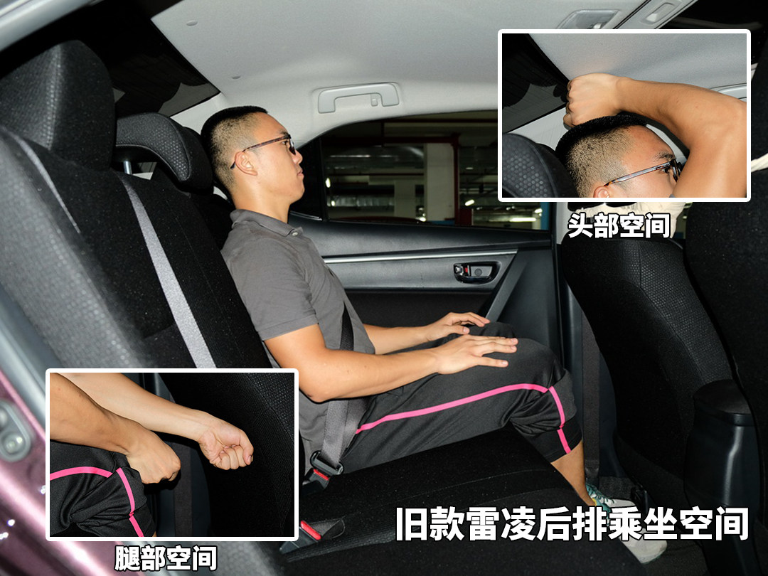 家庭用户更加注重的后排空间差异更大一些。飞哥仔同时坐进新旧雷凌会发现,新雷凌的后排确实小了一些,虽然都是两拳多一点的腿部空间,但是旧雷凌的一点是肉眼可见的更多一点。