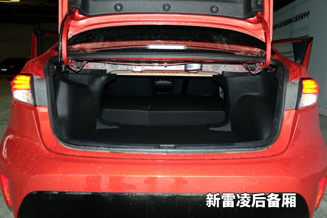 新雷凌·双擎的电池放置在后排座椅的下方,不再占据后备厢的空间,所以新雷凌·双擎的后备厢容积跟燃油版是一样的,后排座椅还可以放倒,实用性肯定要比旧雷凌·双擎好不少。