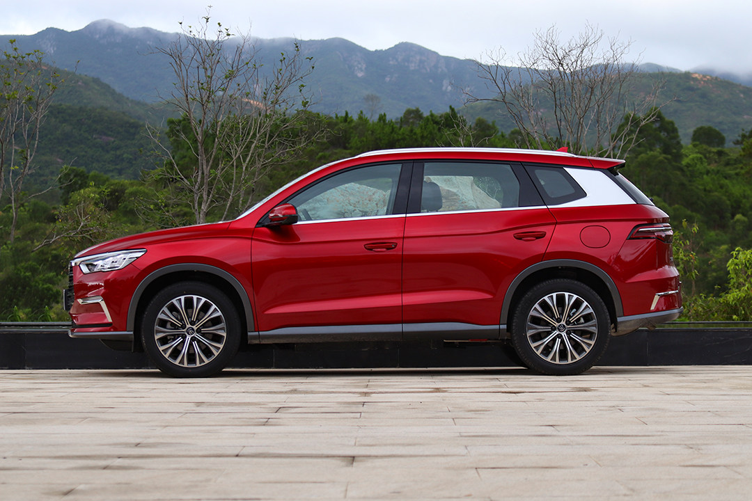作为比亚迪BNA架构下的A+级大五座SUV,宋Pro DM长/宽/高:4650/1860/1700mm、轴距:2712mm,选用赤帝红车漆的车型颇具“迷惑性”,路人乍眼一看,还以为是唐DM驰骋而过。