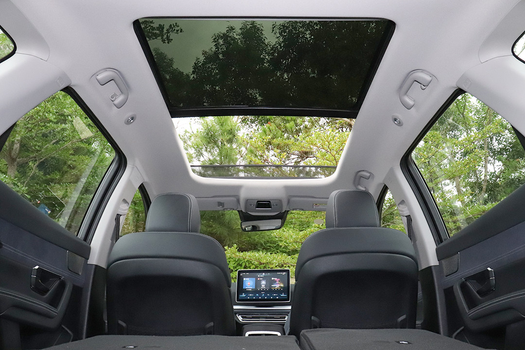 除此以外,后排座椅按比例放倒功能的引入,进一步拓展了舱内空间利用率,低窗线设计和大面积全景天窗提升了车内通透感,对于容易晕车的长辈而言无疑是利好消息。