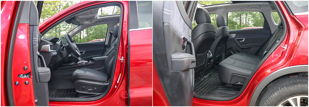 后排头枕显然是为了长途乘坐而设,辅以同级罕见的后排座椅角度可调节功能,后排座椅最大110°可调能将后排椅背调节至“微躺”状态,长途乘坐时,能依稀感受到飞机头等舱和高铁商务舱的惬意。