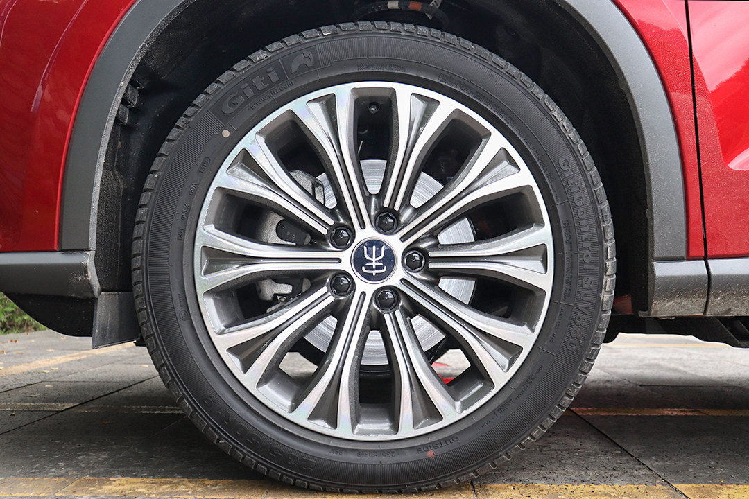 四驱性能版车型选用了偏向于舒适、耐用度的佳通户外轮胎(235/50 R19),而四驱高能版则搭载干地抓地力更佳的固特异御乘系列轮胎(同为235/50 R19)。