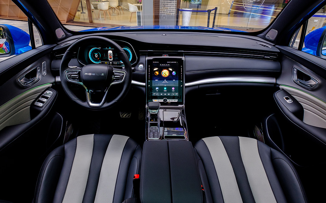 荣威RX5 MAX内饰设计以简约为主,横向展开的整体座舱、横向贯穿的空调出风口舒展大气。一体式中控台设计是荣威RX5 MAX独到之处,2.5D曲面玻璃材质将上下面板无缝连接,更好地展现了中控台的视觉流畅性。同时,娱乐功能区、驾驶操作区、储物区等功能分区明显,规整的同时也有效降低驾驶过程中的误操作。