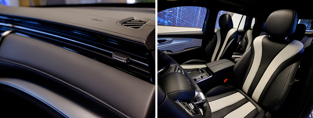 用料和做工方面也足够考究,手能触及的地方几乎都是软质的材料,再配合缝线设计和银色镀铬件的镶嵌,还有Nappa真皮包裹的座椅、多处通风吸汗的打孔设计,大大提升了细节的质感。