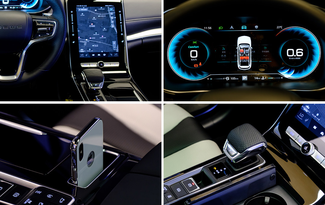 既然是智能化座舱,科技氛围当然是重头戏,相信这也是年轻消费者的最爱。14.3英寸2.5D曲面大屏采用竖屏的设计,主要操作都通过触控来实现,基本见不到繁琐的物理按键;12.3英寸全景AR模式虚拟仪表,界面采用鹦鹉螺的设计,还支持AR实景导航,非常酷炫;电子挡杆和插拔式无线充电的设计也很讨巧。整体而言,无论是科技感还是豪华感都无可挑剔。