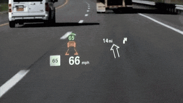 此外一种将AR增强现实技术融入HUD抬头显示的全新车载HUD被各大车企提上了日程。其优势是拥有更大的视场角和更远的成像距离,甚至还能直接将显示效果叠加到现实路面。