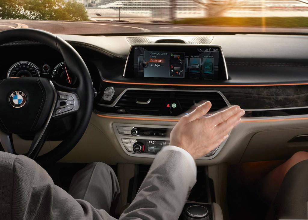 而宝马的手势操控系统可通过空中轻点、手指画圈、左右挥手以及两个手指的平行或斜向拖曳的一系列动作实现控制导航、信息娱乐系统、接听来电等的功能。比如识别区域滑动或点击就可以接入或拒绝来电,食指圆周运动可以调节音量。此外系统还预留一个自定义的手势控制动作,用户可根据个人喜爱对“开关静音”、“历史通话”、“最近使用菜单”等多项功能任选一项进行个性化设定。