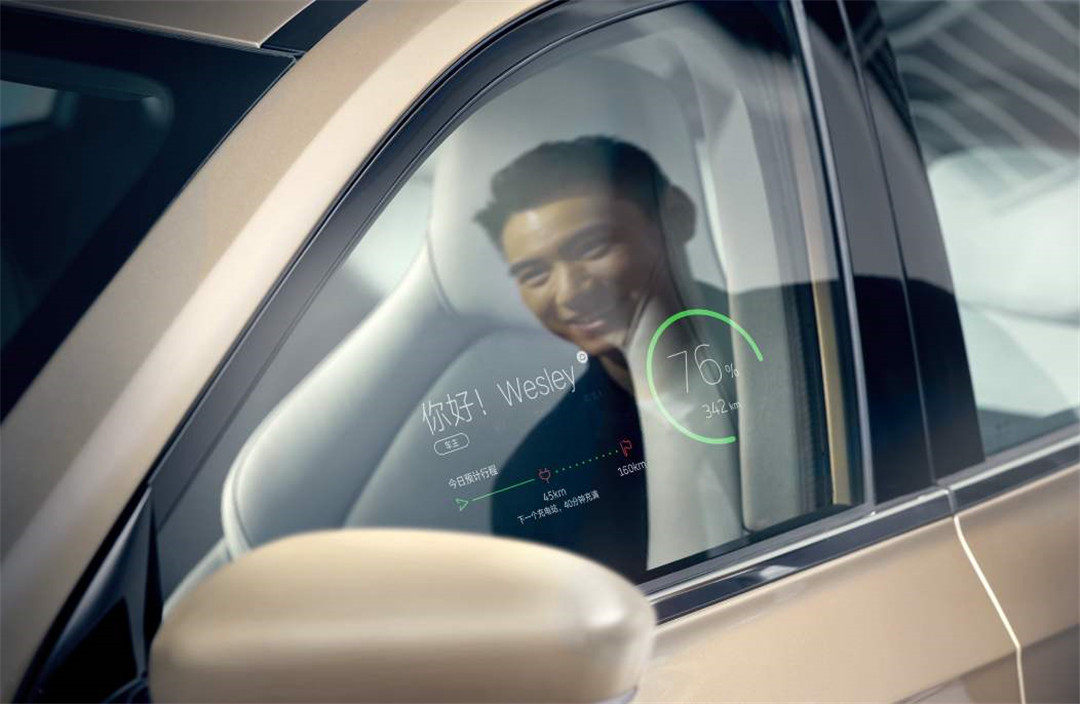 每一位车主都有一个专属的ID,当车主靠近时车窗的智能系统会识别车主的身份。随后在玻璃上会显示出生动的emoji表情符号和倍感亲切的问候语,紧接着剩余电量、续航里程、行程安排、路线推荐等相关信息也会陆续呈现。最后伴随着徐徐开启的隐藏式门把手代表着欢迎车主的最后一个仪式正式完毕。整个上车过程既温馨又智能,还有十足的仪式感。此外这项功能还将通过识别驾驶者身份,为车主、家庭成员、授权用户或访客开启相应权限,并为每一个对应ID提供个性化的服务。