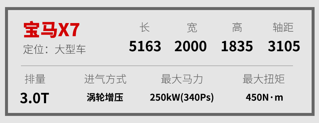 B58系列的发动机依旧是X7的主动力规格,340Ps最大马力、450N·m峰值扭矩与740Li上统一,同时能够让X7实现6.1s的百公里加速。