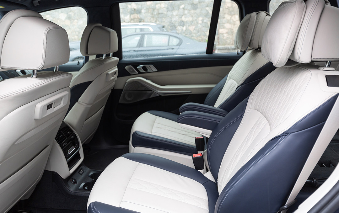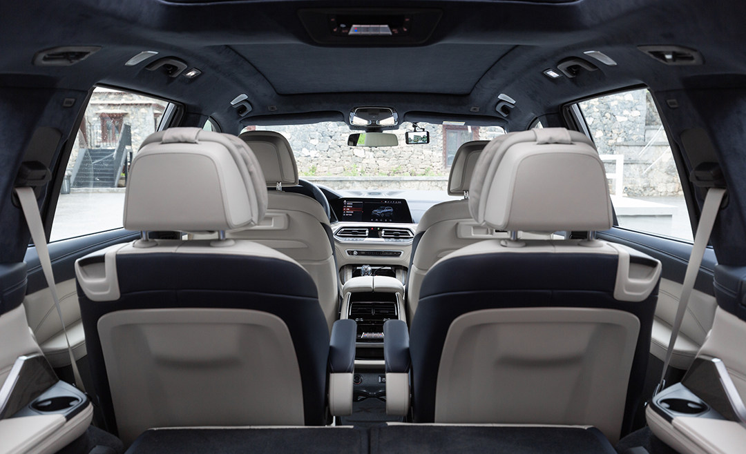 为了对每一排的乘客都不区别对待,X7在每个位子都有配给相应的充电接口,还有五区空调。而此前在7系上我们提到的Bowers & Wilkins音响,于X7上更是追加了四个顶置扬声器,来营造更完美的视听盛宴。