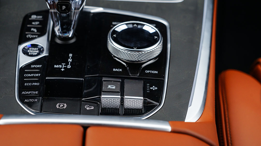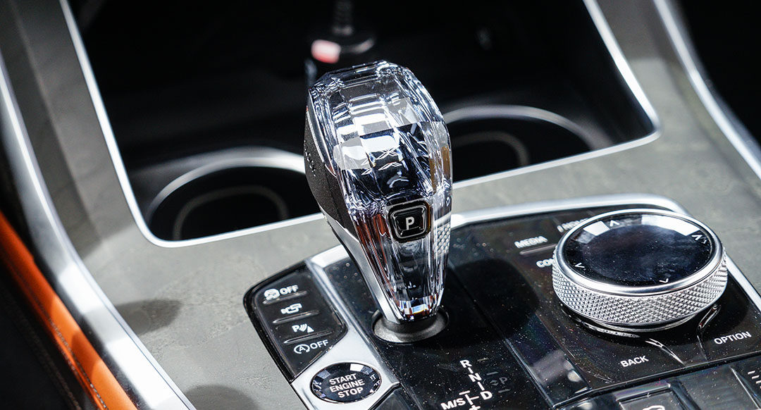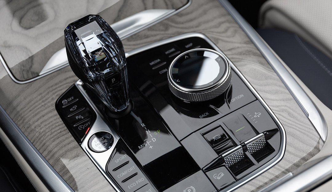 最能彰显X7豪华身份的,莫过于X车系专属的水晶挡把,旁边的iDrive旋钮表面也做成了水晶覆盖的样式,其依然支持手写操作。